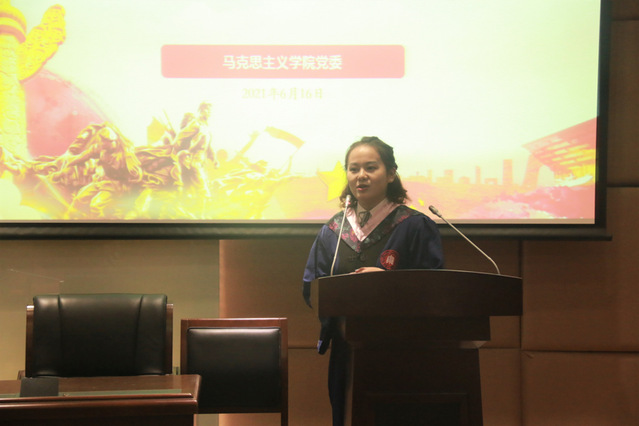 2021届硕士毕业生汤瑭和王民泽就此次毕业生党员教育分享了自身的几点感悟。表示将牢记老师们的勉励和教诲,在日后的求学和工作中将脚踏实地地做人做事,关爱他人服务他人,以实际行动,做一名合格的共产党员,彰显学校立德树人的宗旨。